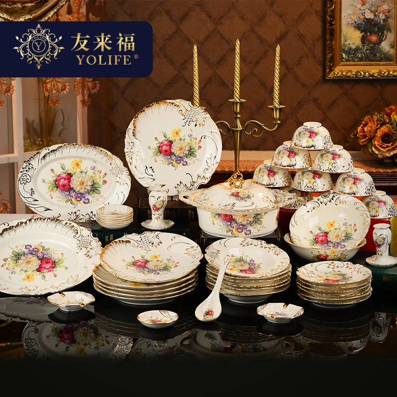 Best . (11% Off) Buy Ceramic Yellow Handpainted Gold 28 Pieces Bowl, Plate, Tableware, Gift Box Set Customized Processing High-end Wedding Gifts Price Online.