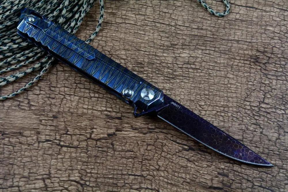 Product Name: Jungle Edge JR8311 Damascus Blade TC4 Titanium Handle Ball Bearing Washer Flipper Outdoor Camping Hunting Gift Folding Knife EDC