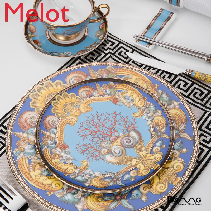 Special Offer Europe And The United States Ocean World Bone China Tableware Western Dish Cup Knife Fork Spoon Restaurant Fancy Plates Discount 0% Today!