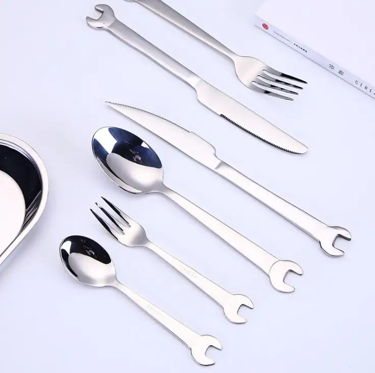 Best . (0% Off) Buy Wrench Stainless Steel Flatware Set Dinnerware Knife Fork Spoon Creative Kitchen Tools 6pcs Set SN2586 Cheap Online.